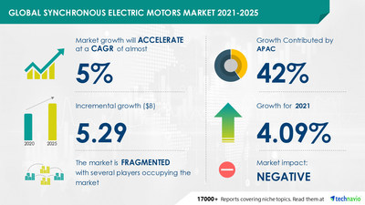 View original content to download multimedia:https://www.prnewswire.com/news-releases/-5-29-billion-growth-expected-in-the-global-synchronous-electric-motors-market-2021-2025–segmented-by-end-user-product-and-geography—technaviocom-301265517.html